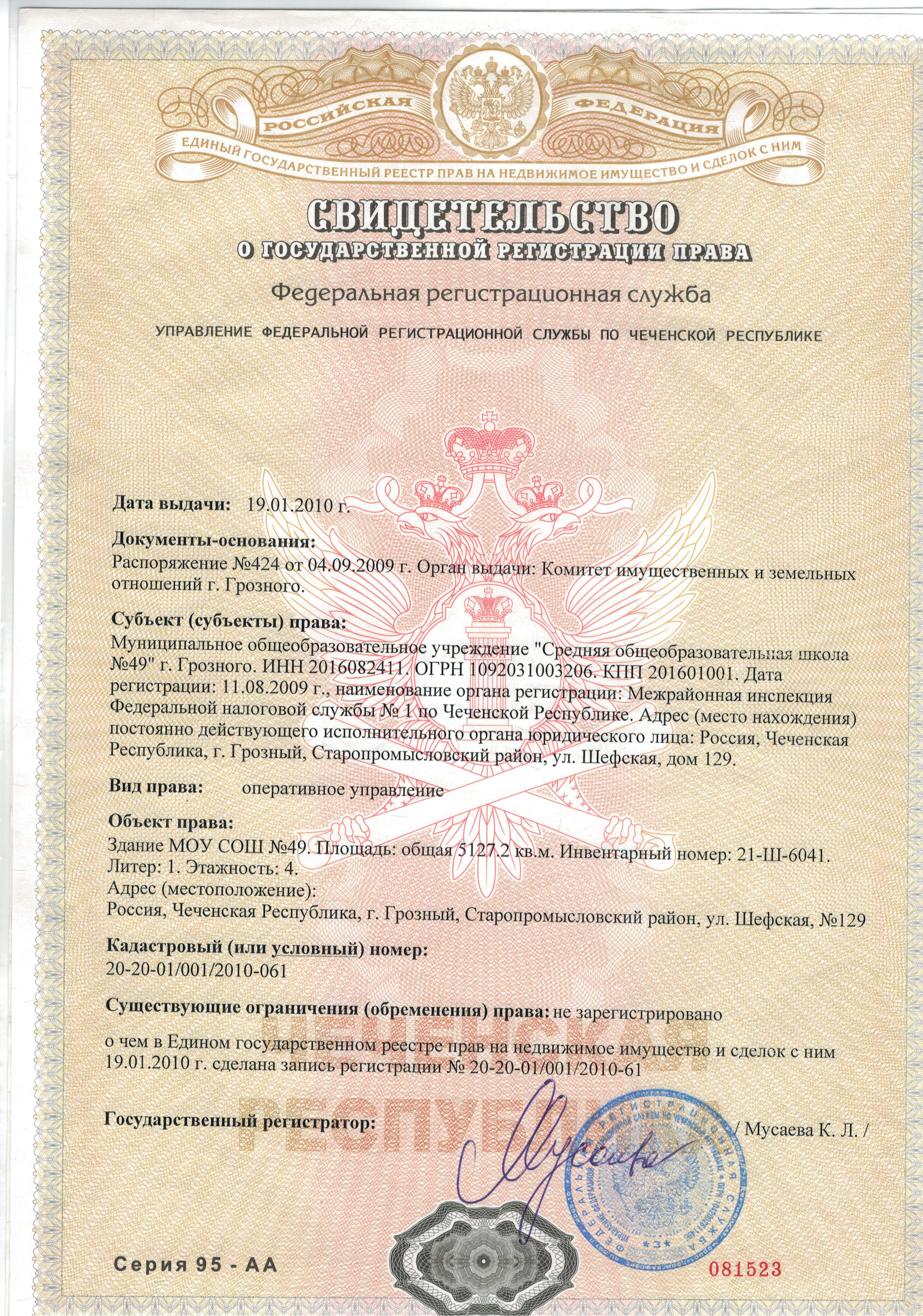 Постановление Мэрии г. Грозного №62 от 24.08.2023 "О закреплении территорий города Грозного за муниципальными общеобразовательными организациями города Грозного"