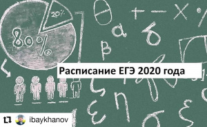 ЕГЭ-2020:20 марта – география и литература; 23 марта – русский язык; 27 марта – математика (базовый и профильный уровни);30 марта – иностранные языки (письменно), биология, физика;1 апреля – иностранные языки (говорение);3 апреля – обществознание, информатика и ИКТ;6 апреля – история, химия;8 апреля (резерв) – география, химия, информатика и ИКТ, иностранные языки (говорение), история;10 апреля (резерв) – иностранные языки (письменно), литература, физика, обществознание, биология.13 апреля (резерв) – русский язык, математика (базовый и профильный уровни).
