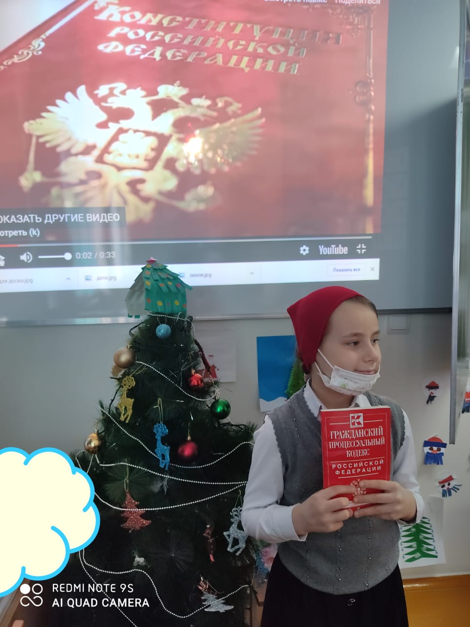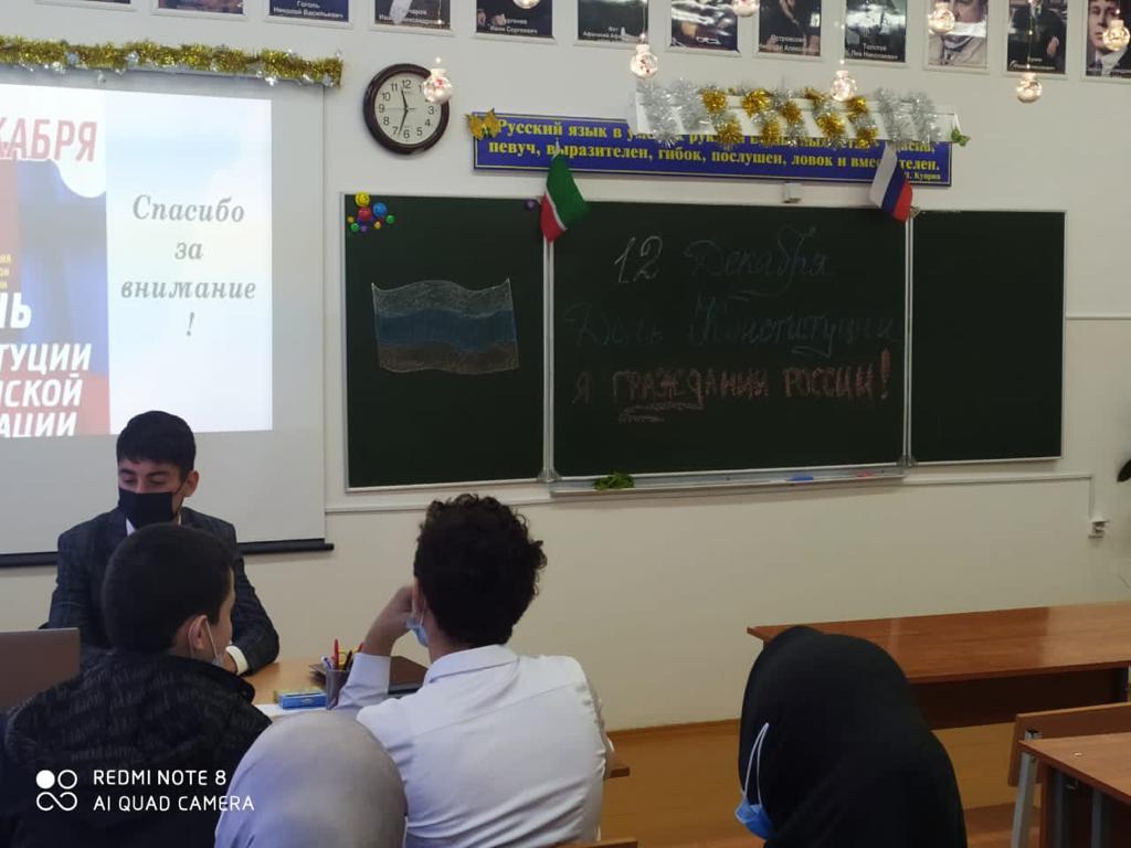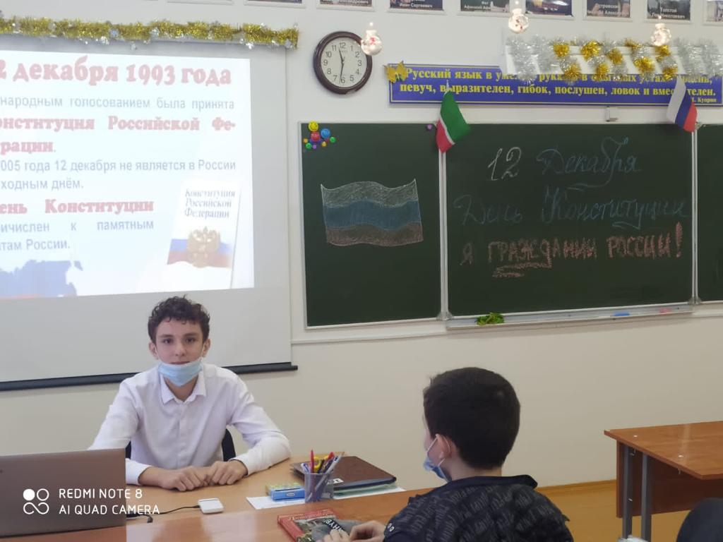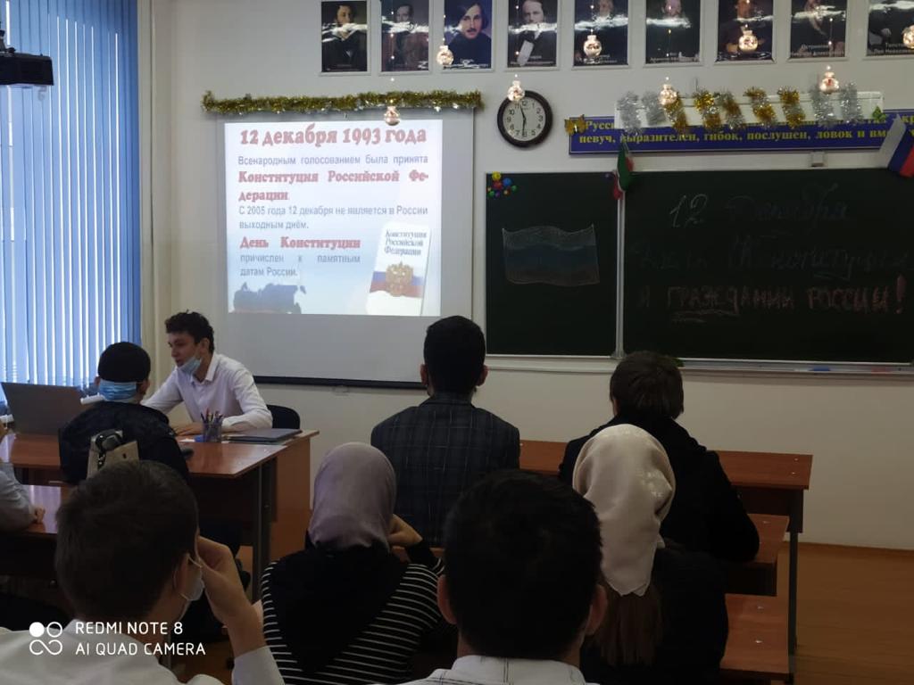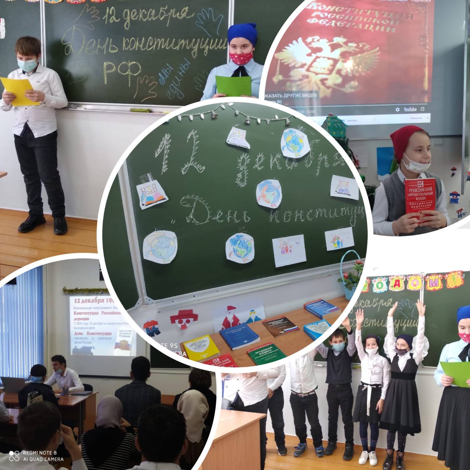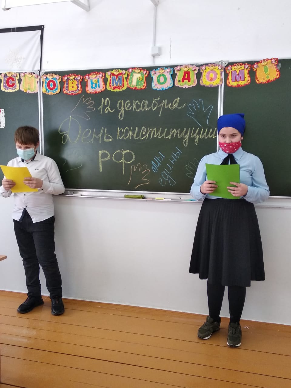 12.12.2020В рамках празднования Дня Конституции РФ в школе были проведены следующие мероприятия: 08.12.2020г. 1-4 классах кл.руководителями проведены кл. часы «Я - гражданин России!», «Права и обязанности каждого гражданина». 11.12.2020г. 9-11 классах проведены беседы с целью формирования у учащихся представления о Конституции РФ,символике России.