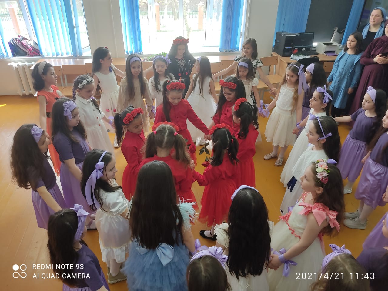 Сегодня среди школьниц первых классов и 4 а класса, прошёл фестиваль цветочный бал