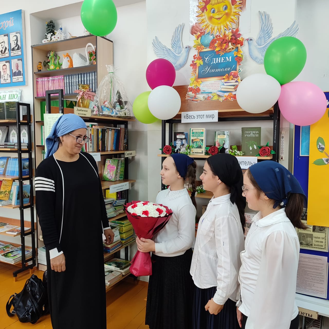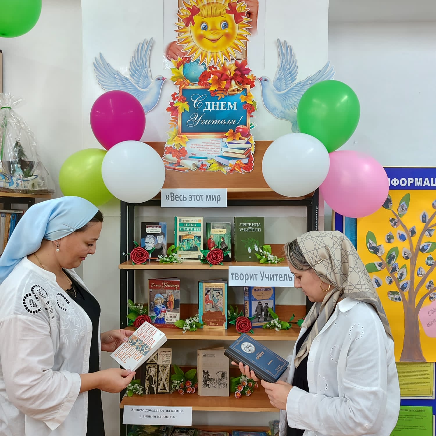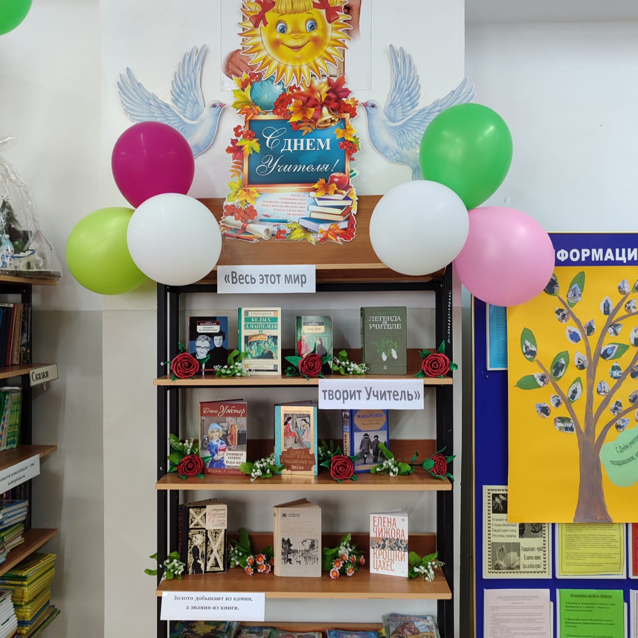 В школьной библиотеке была проведена выставка посвященная профессии учителя "Весь этот мир творит Учитель"