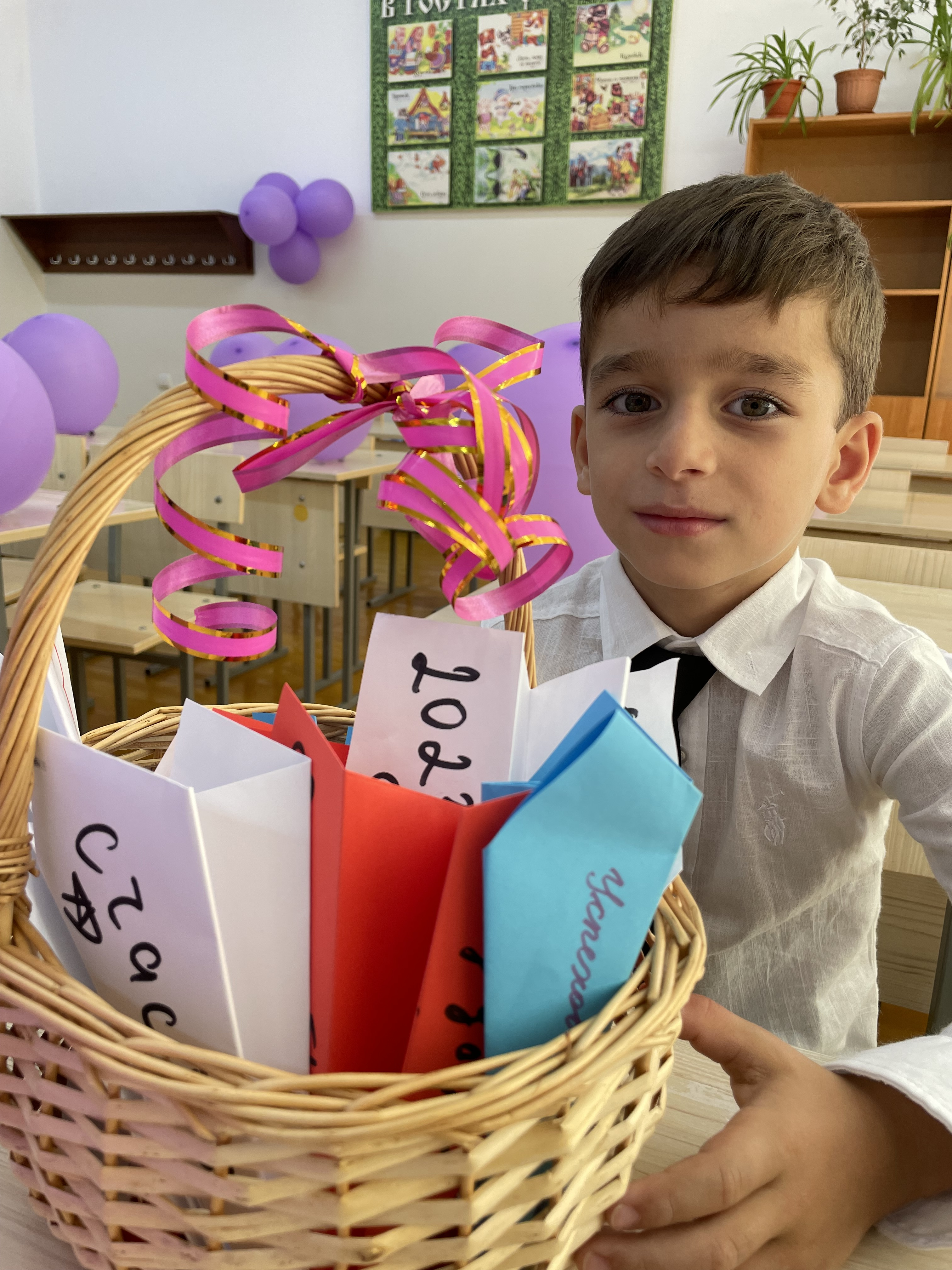 До начала линейки 11-классники сделали бумажные самолетики, разукрасили и написали на самолётиках напутственные слова для первоклассников. В конце линейки рассказывали легенду о самолётике и 11-классники передали самолётики первоклассникам, а они должны их сохранить до своего первого классного урока.
