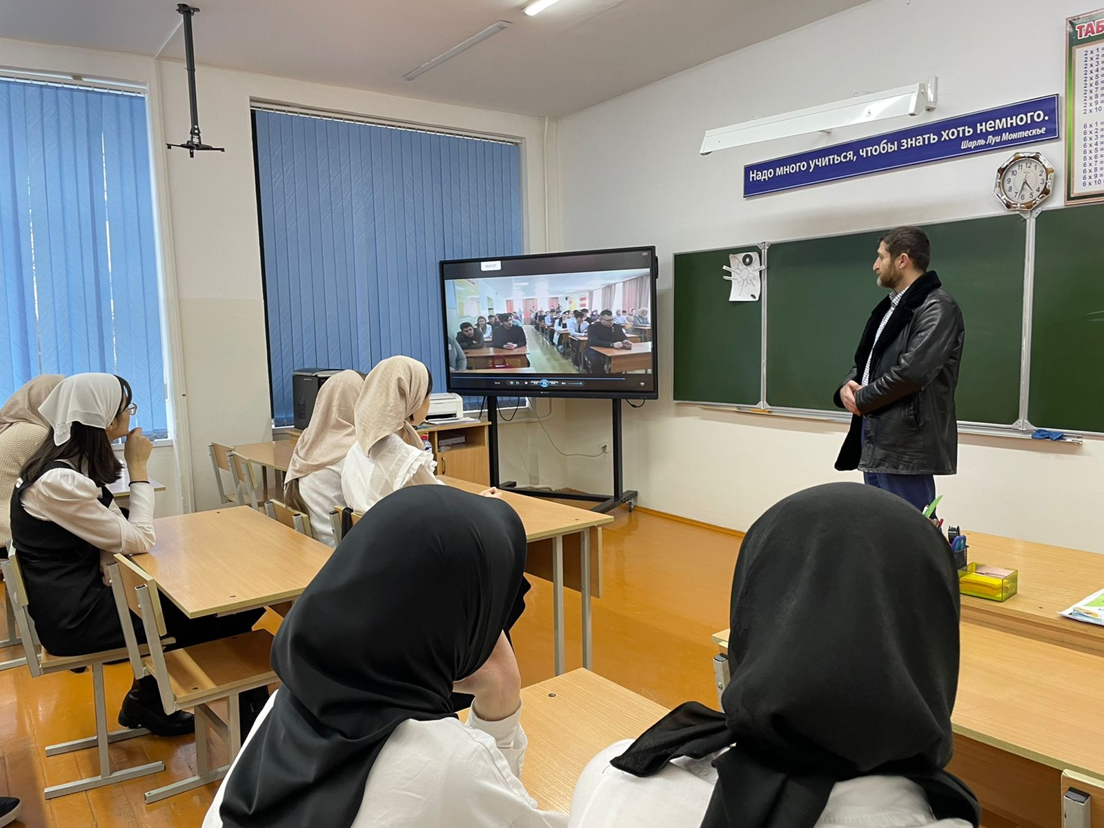 15.12.202315 декабря 2023 г. старший преподаватель кафедры "Уголовное право, процесс и национальная безопасность" юридического факультета ФГБОУ ВО «ЧГУ имени А.А. Кадырова» Бахмадов Муса Баудинович провел занятие по профориентации в МБОУ «СОШ №49» г. Грозного с учащимися 9-11 классов.