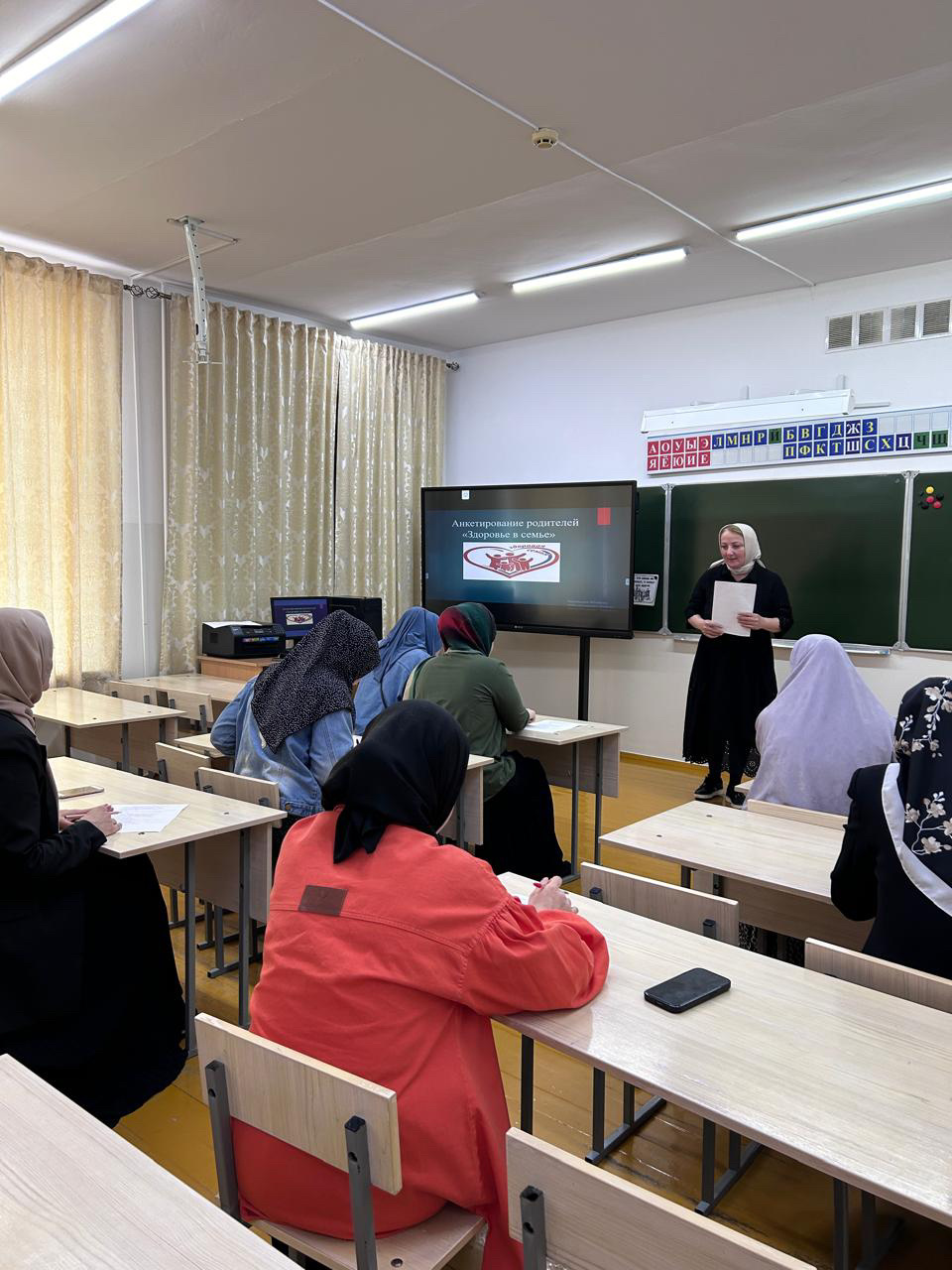 В МБОУ "СОШ № 49 " г. Грозного по результатам социально-психологического тестирования в рамках профилактических мероприятий проведено анкетирование родителей по теме «Здоровье в семье», «Детско-родительские отношения».