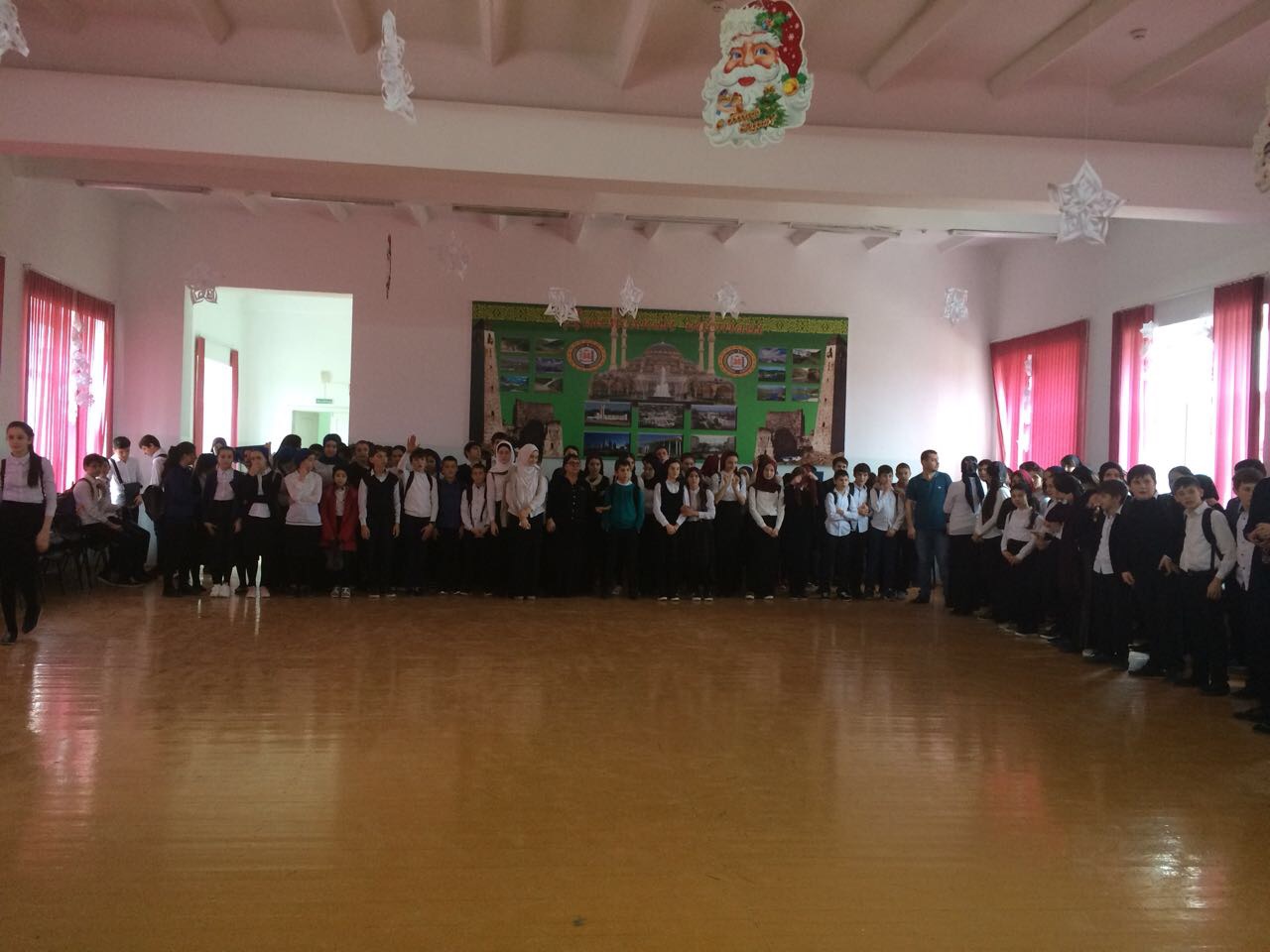 09.01.2018Согласно плану работы Департамента образования в МБОУ "СОШ № 49" сегодня 9 января была проведена торжественная линейка посвящённая Дню восстановления государственности чеченского народа. В мероприятии приняли участие весь педагогический состав и уч-ся 5-11 классов.