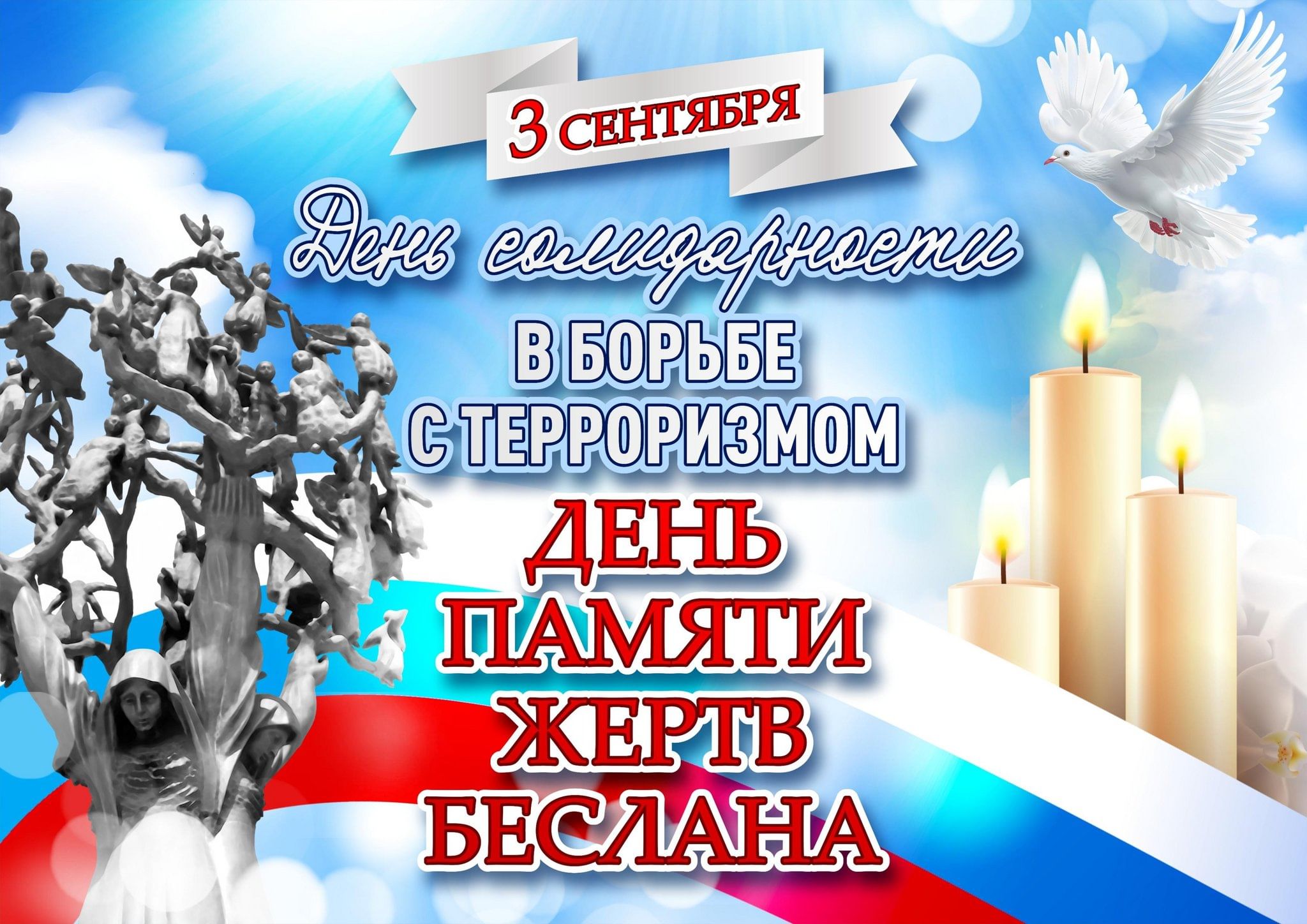 03.09.20253 сентября – День солидарности в борьбе с терроризмом в России Эта дата связана с трагическими событиями, произошедшими 20 лет назад в школе №1 города Беслана. Ежегодно З сентября в России отмечается День солидарности в борьбе с терроризмом. Этот день приурочен к трагическим событиям, произошедшим 1-3 сентября 2004 года в городе Беслан (Северная Осетия).