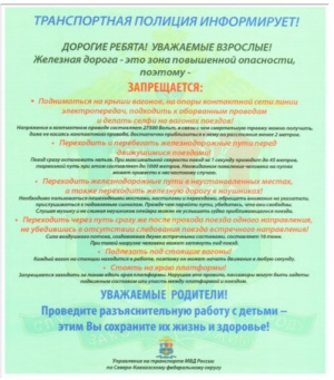 Транспортная полиция информирует!Дорогие ребята! Уважаемые взрослые!Железная дорога - это зона повышенной опасности!